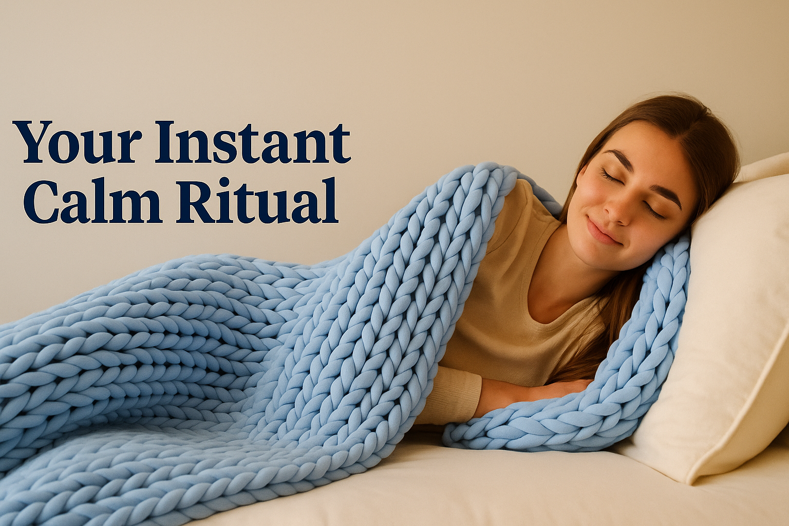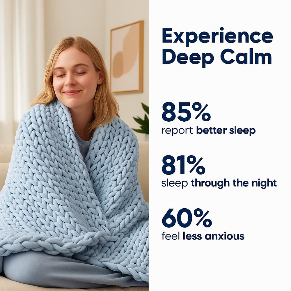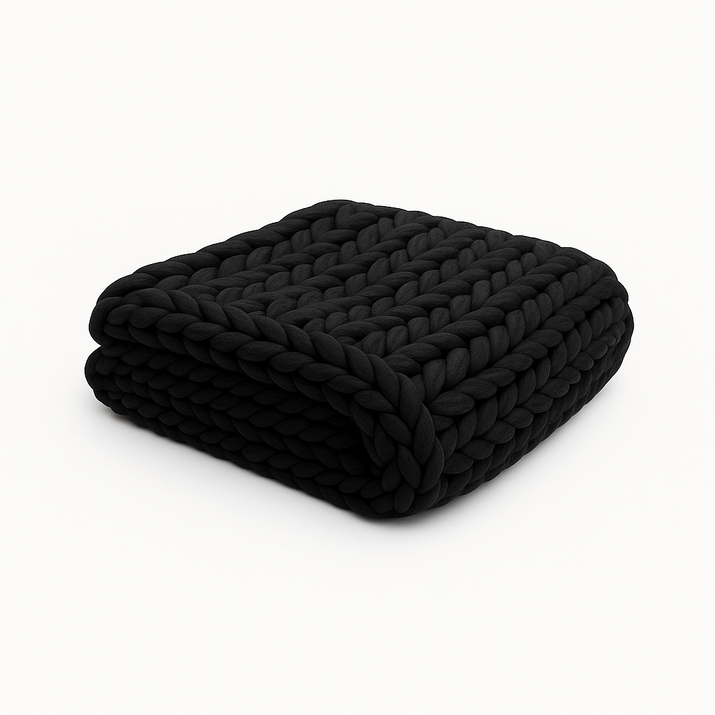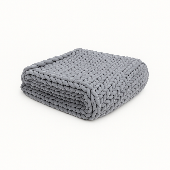 Experience the ultimate embrace of coziness with our luxurious, hand-knit blanket designed to melt away stress and enhance your relaxation. This oversized, weighted sanctuary invites you to snuggle and unwind in style.